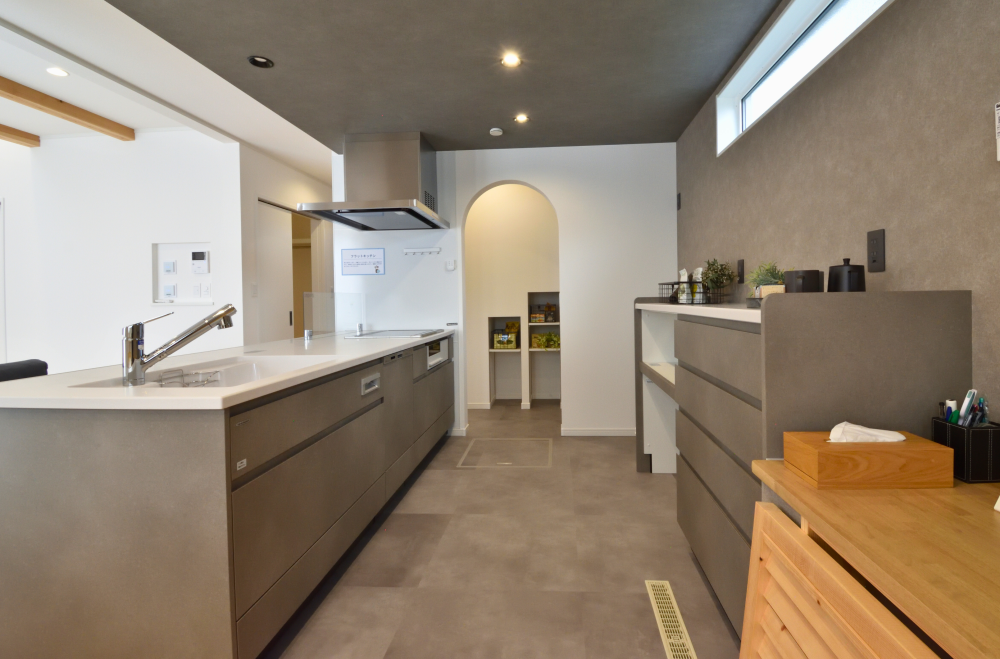 キッチン横にはパントリー収納、食品ストックや調理器具の収納に活用できます。
