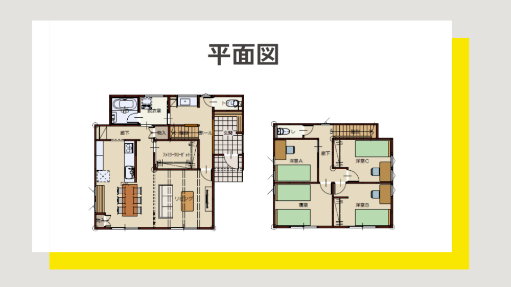 ファミクロを中心に玄関ホールからはじまる回遊動線が、家族で過ごすリビングとひとりでゆっくり過ごす水回りをつなげる快適な間取り。