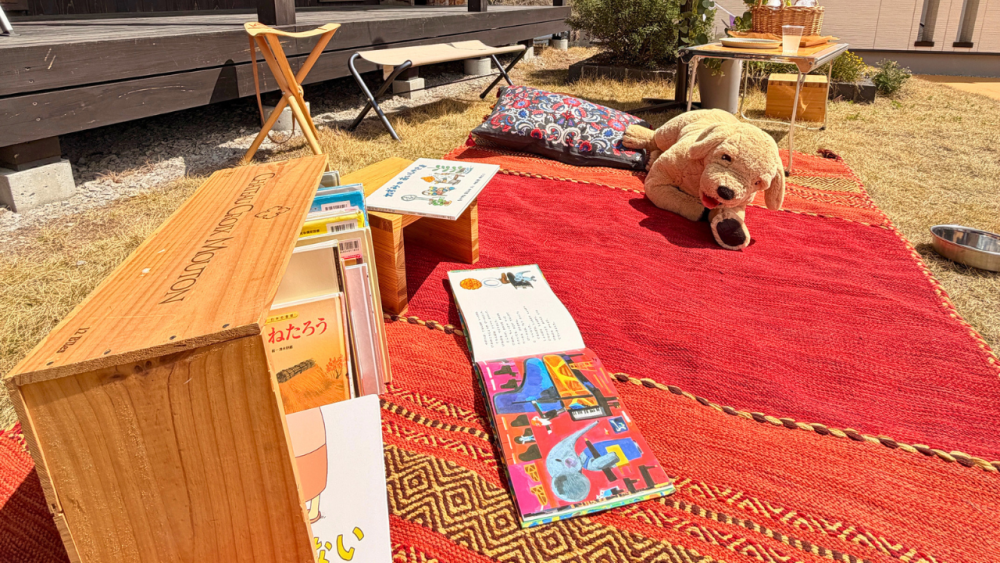 お庭に用意したドリンクサーバーでお気に入りの一杯を楽しみながら、お菓子を片手に、本棚から選んだ絵本を広げてみてください。